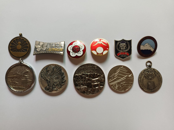 연대가 오래된 것으로 보이는 직경 38밀리의 동메달, 목걸이? 용으로 고리가 있음.